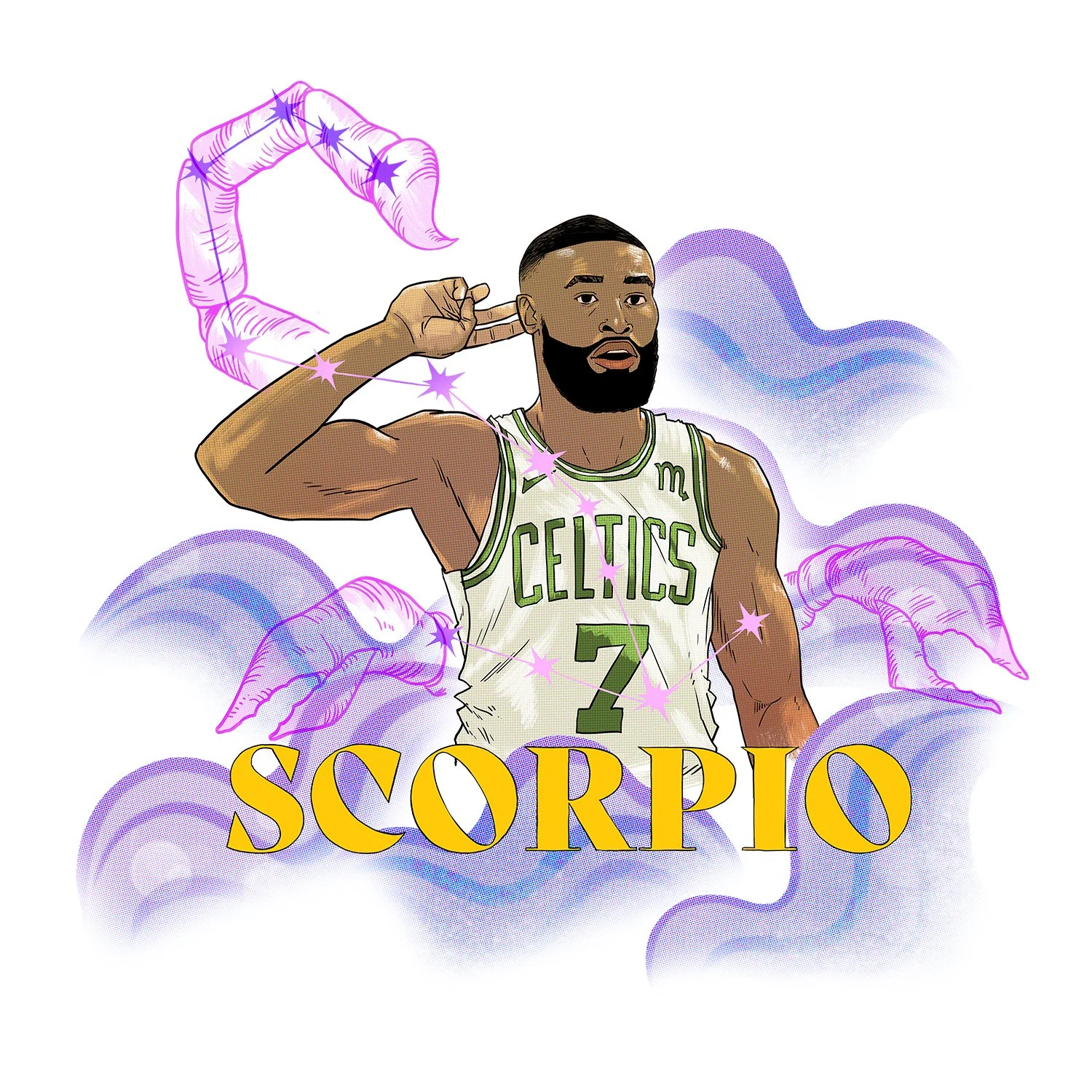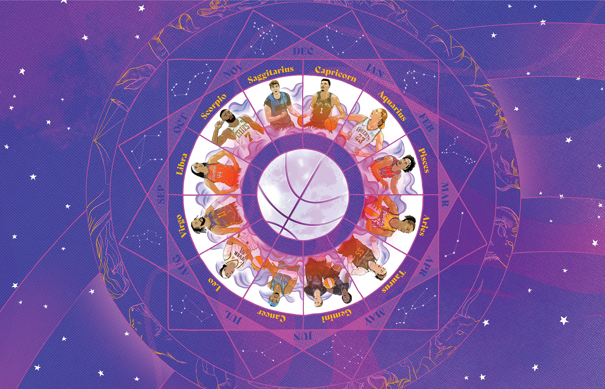 This series of Illustration created for a four page spread in Flagrant Magazines most recent issue. The article uses professional basketball players personalities matched with corresponding astrology signs. This was an exciting project, I always love working with the folks at Flagrant mag, I received a copy of this issue and it is full of great writing and artwork. It really is a special publication, I am always happy when they call.